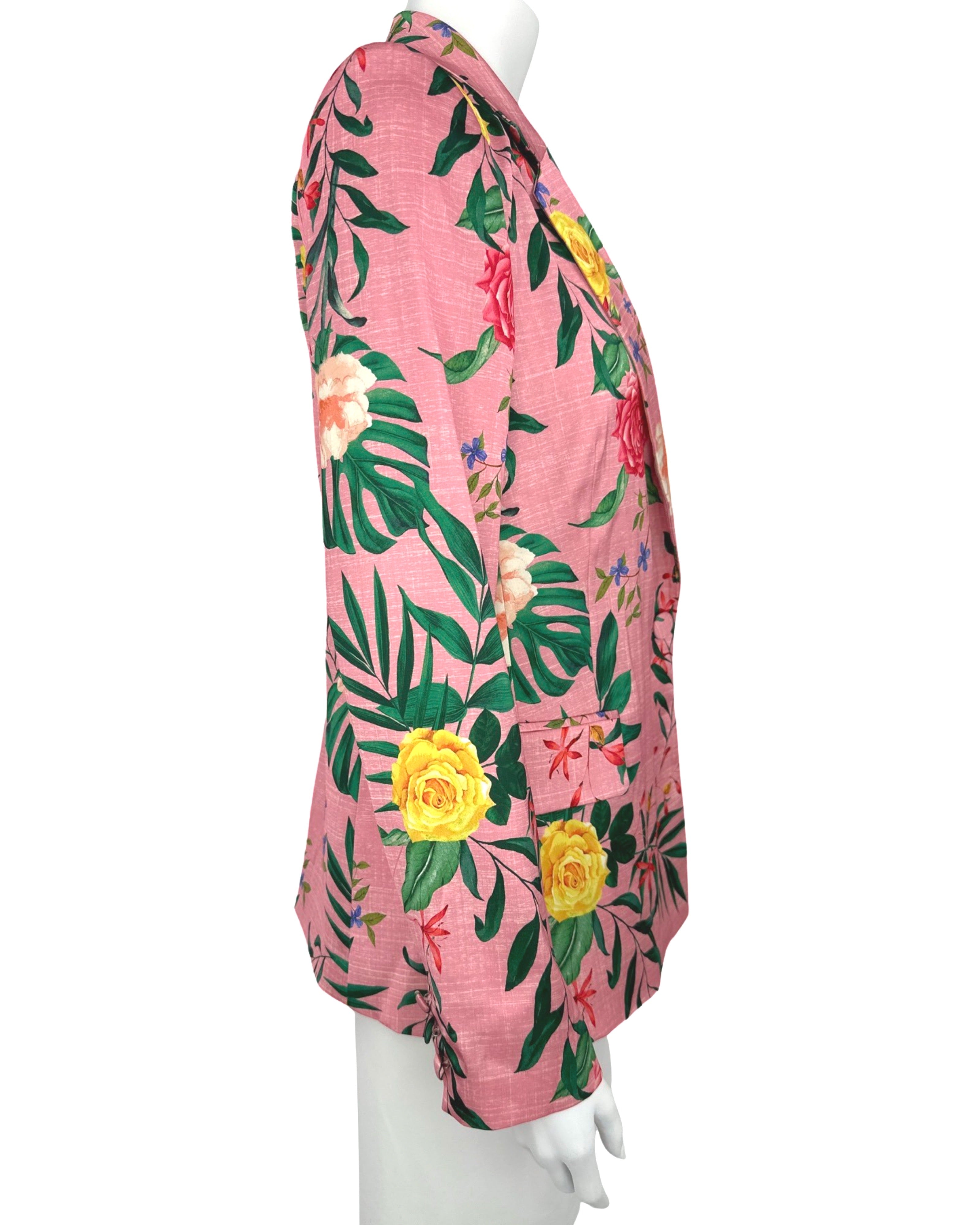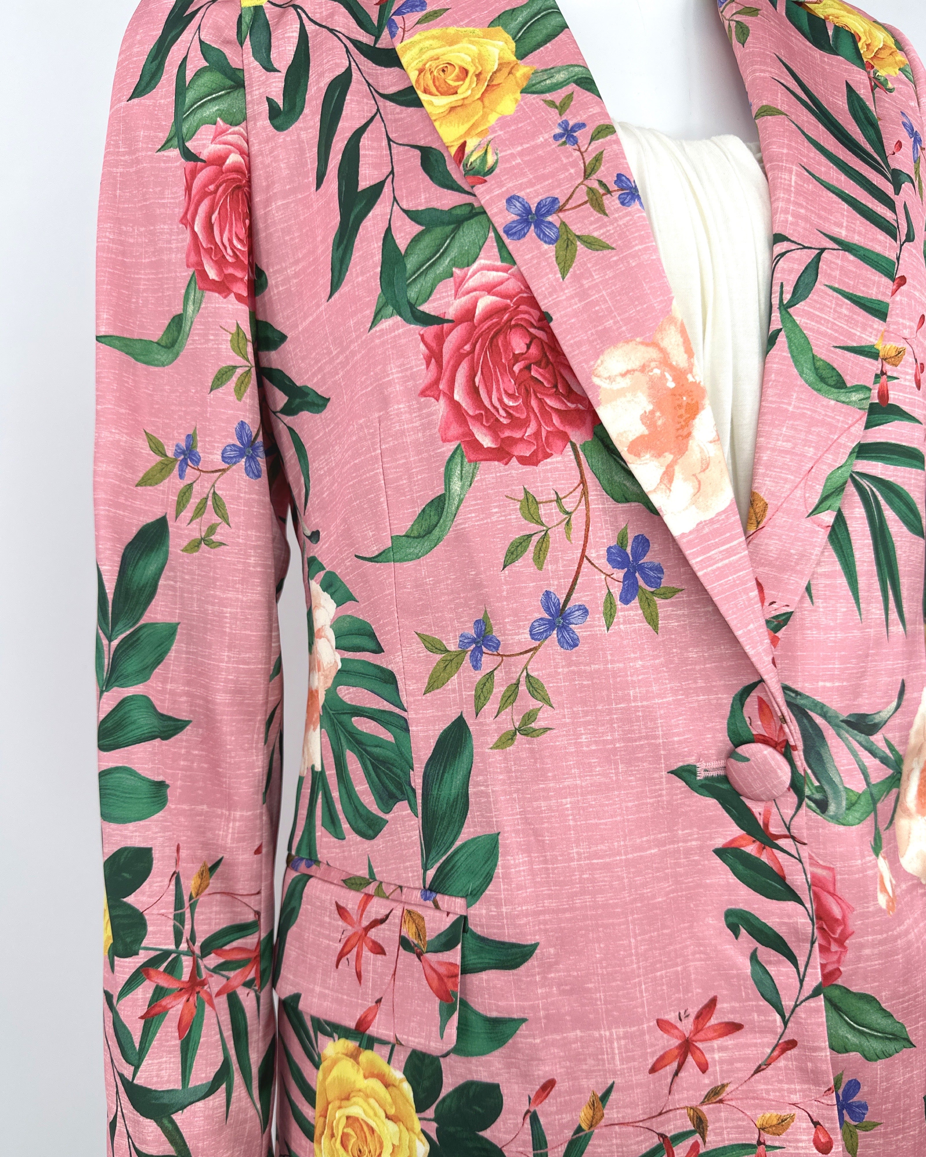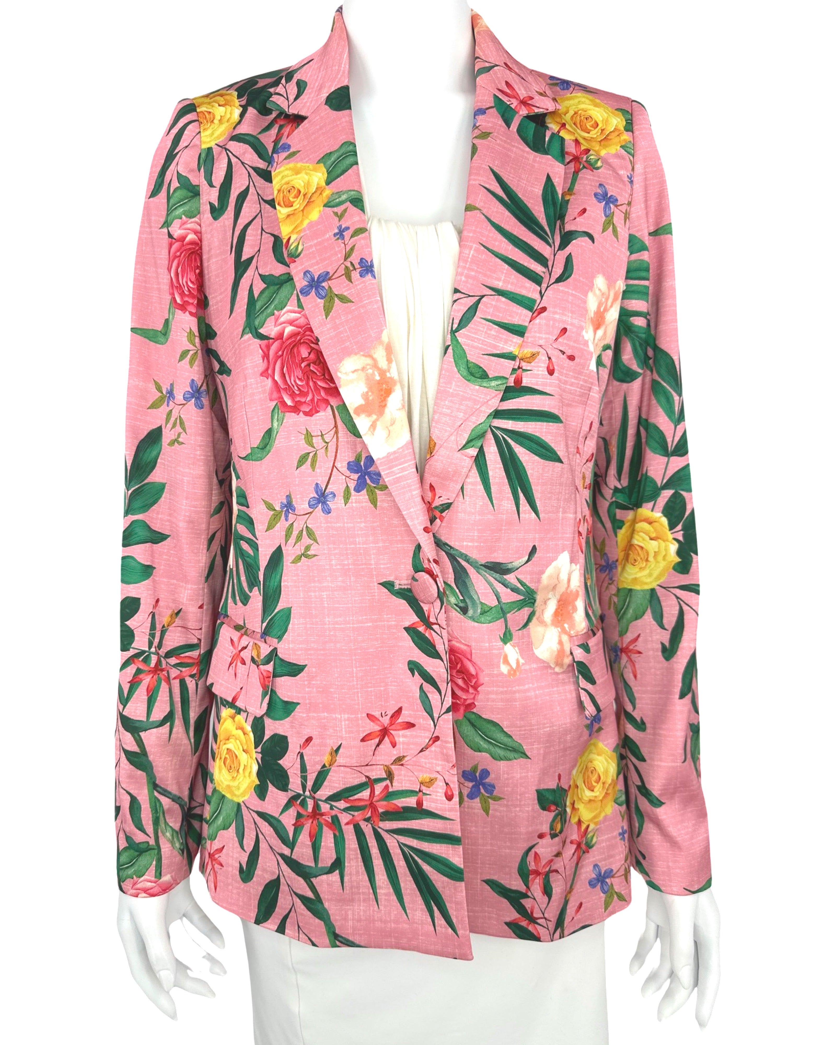 New with tags! Rachel Zoe Single Button Blazer Jacket Lined Pink Roses Floral Satin XS