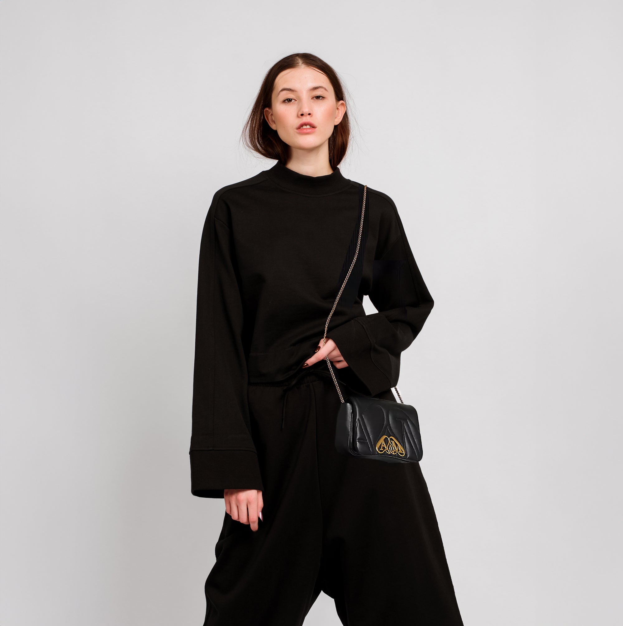 This mini bag from Alexander McQueen is made of quilted leather in Italy and features signature seal hardware. Handcrafted with attention to detail and expert craftsmanship, this bag is a stylish and practical addition to any outfit.
