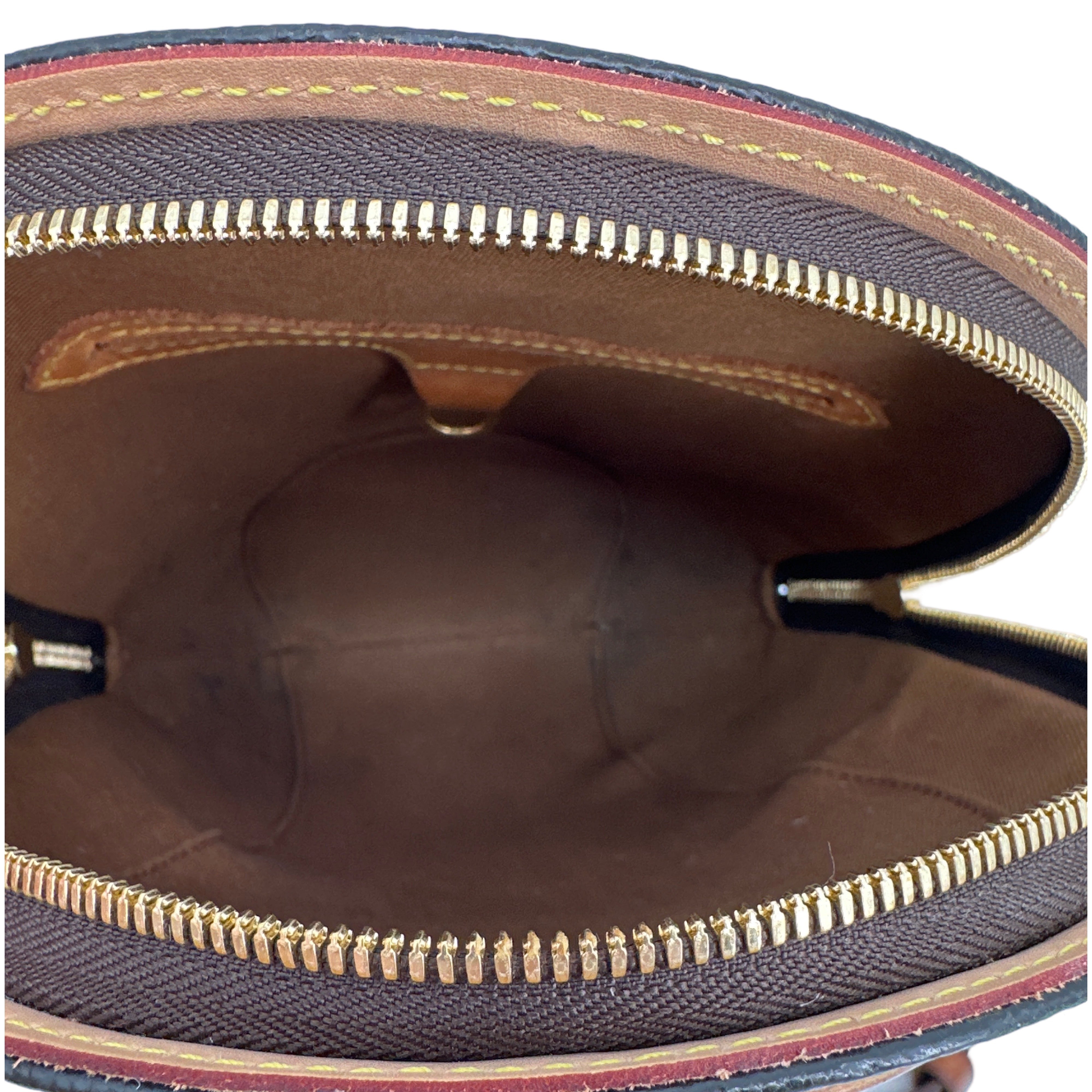 The brown leather trim and adjustable leather straps add to the bag’s luxurious feel while ensuring comfort and versatility. The interior is lined with durable brown canvas, making it practical for everyday use, and includes a zip pocket for organization. The gold-tone hardware, including the newly replaced zipper, adds a touch of elegance and complements the classic monogram pattern.