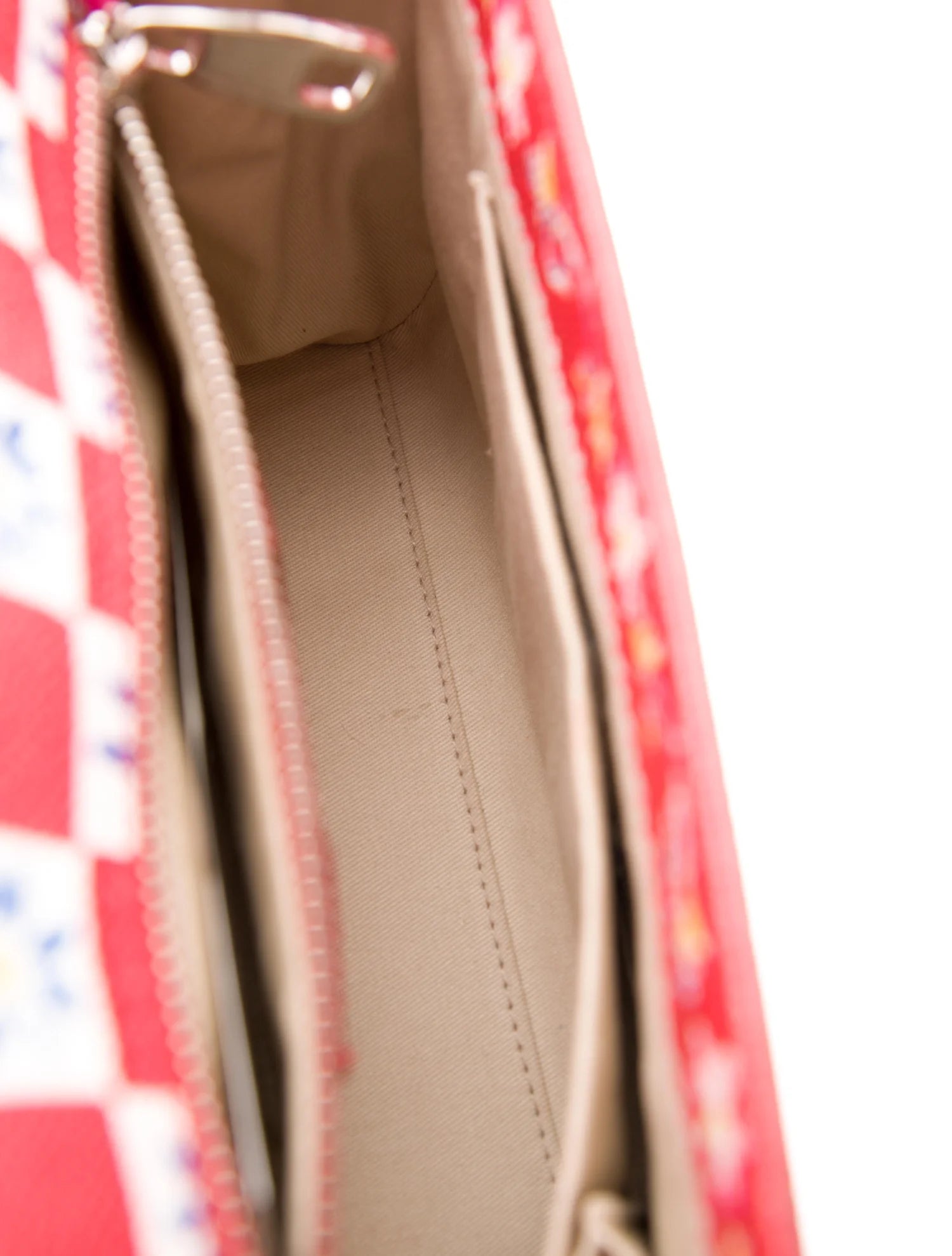 Silver-tone hardware, with a flat handle and canvas lining for sleek, stylish functionality.