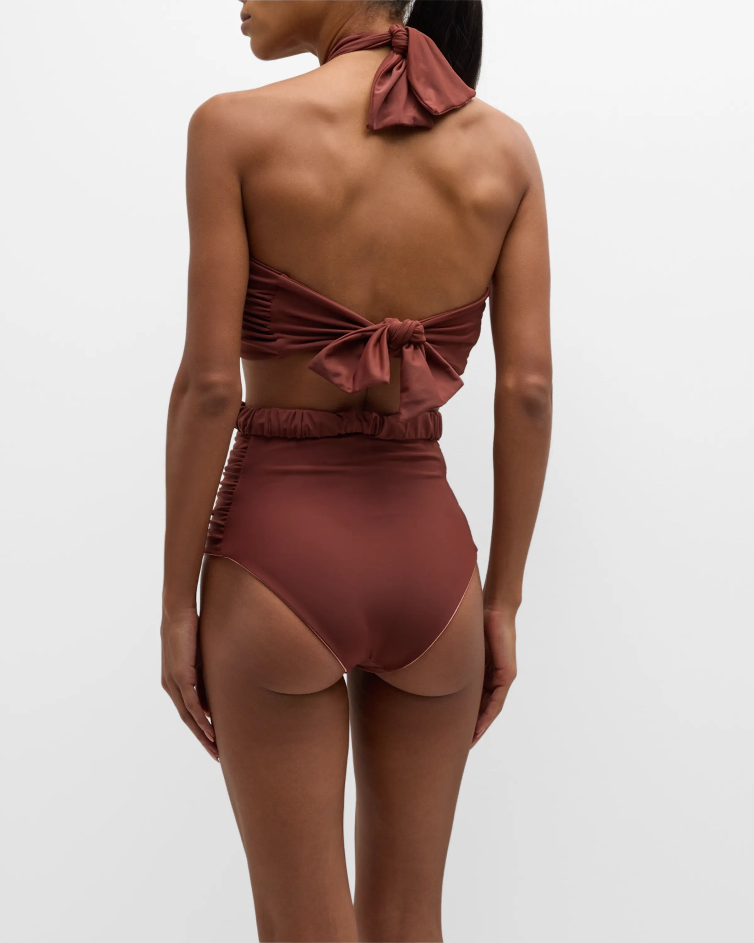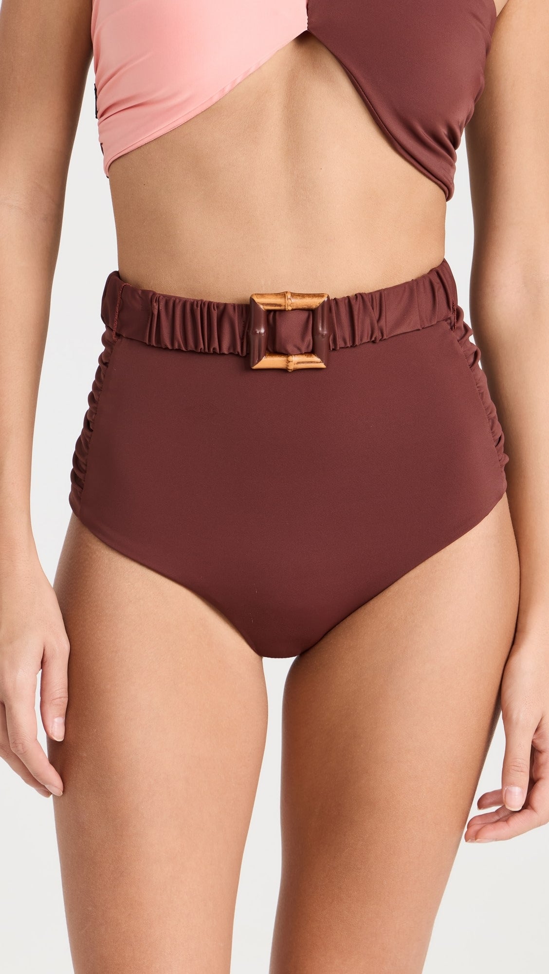 - Johanna Ortiz "African Nomad" bikini bottoms belted with a bamboo buckle