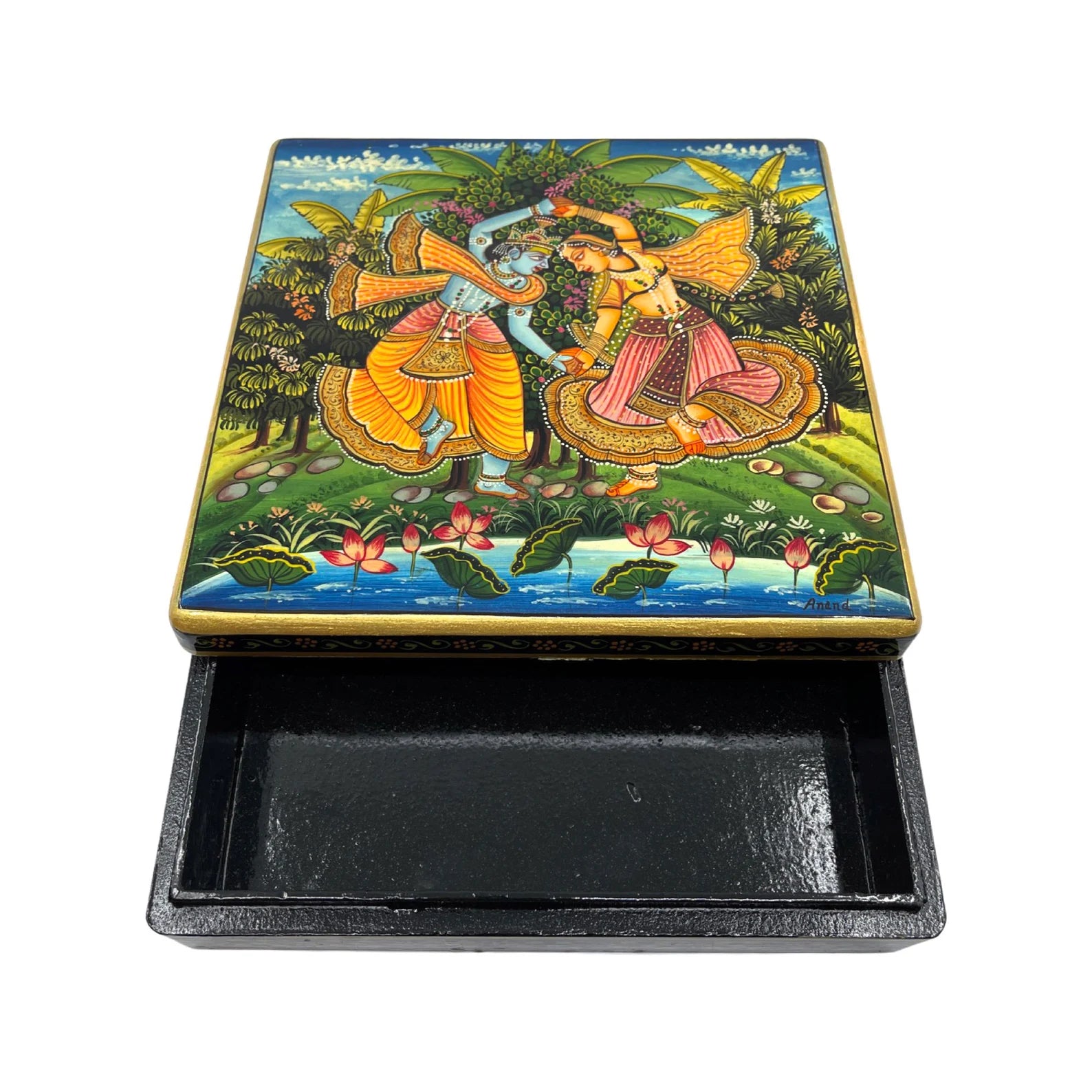One-of-a-kind Krishna Dancing Scene Jewelry Box. Handmade. Made in India.
