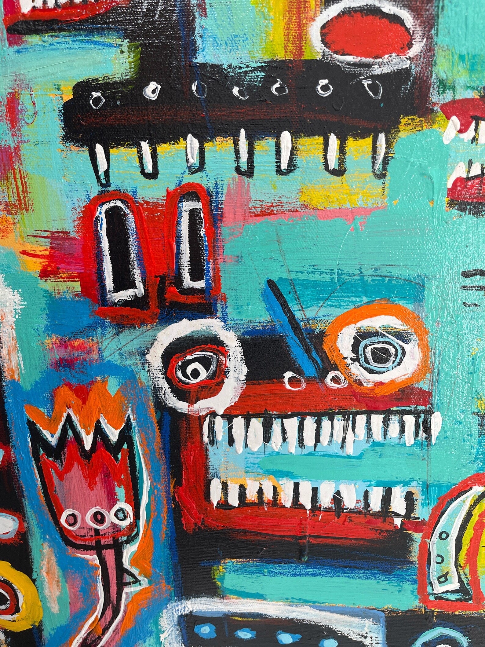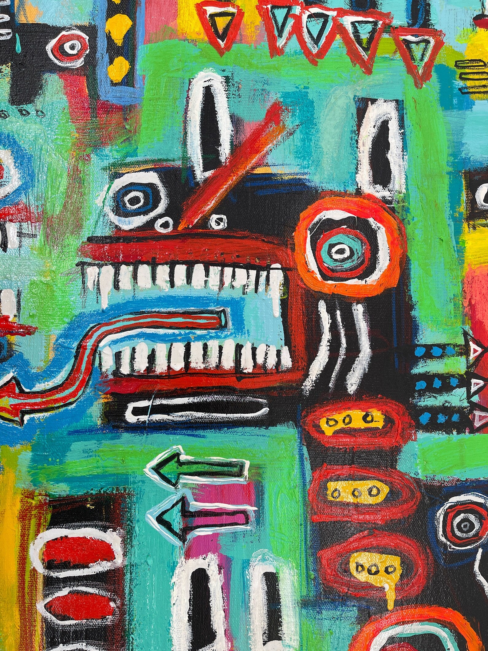 My paintings are the emotional response to a traumatic past, the road to healing, and the confidence of finding a new language to express feelings felt but never shared. While some people see my paintings as angry or aggressive, many of my collectors and fans (including myself), see my work as hopeful, joyous, and eager to take on the world!