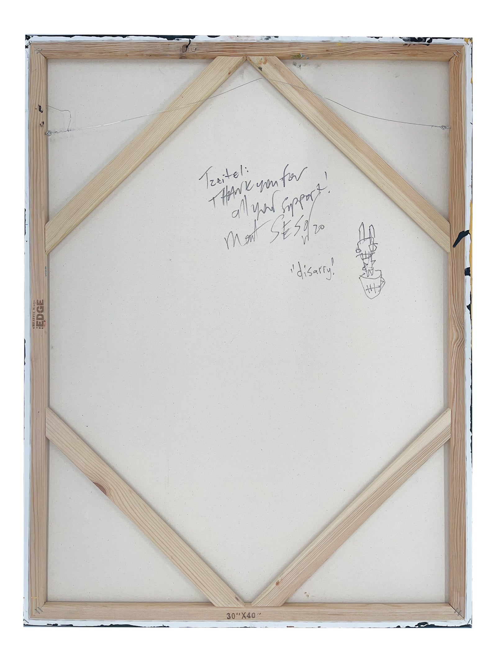 Signed on the back with personal message to art collector.