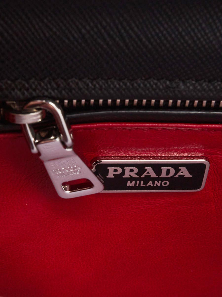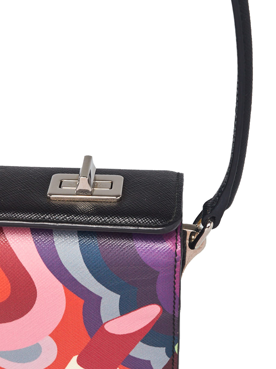 - Design: A MUST HAVE! This is your chance to get this Prada Black Multicolor Saffiano leather shoulder bag, with a gorgeous and vintage inspired design that will make any outfit look chic and sophisticated. Features a unique frame structure, two twist metal closures and a bold vintage lipstick print.